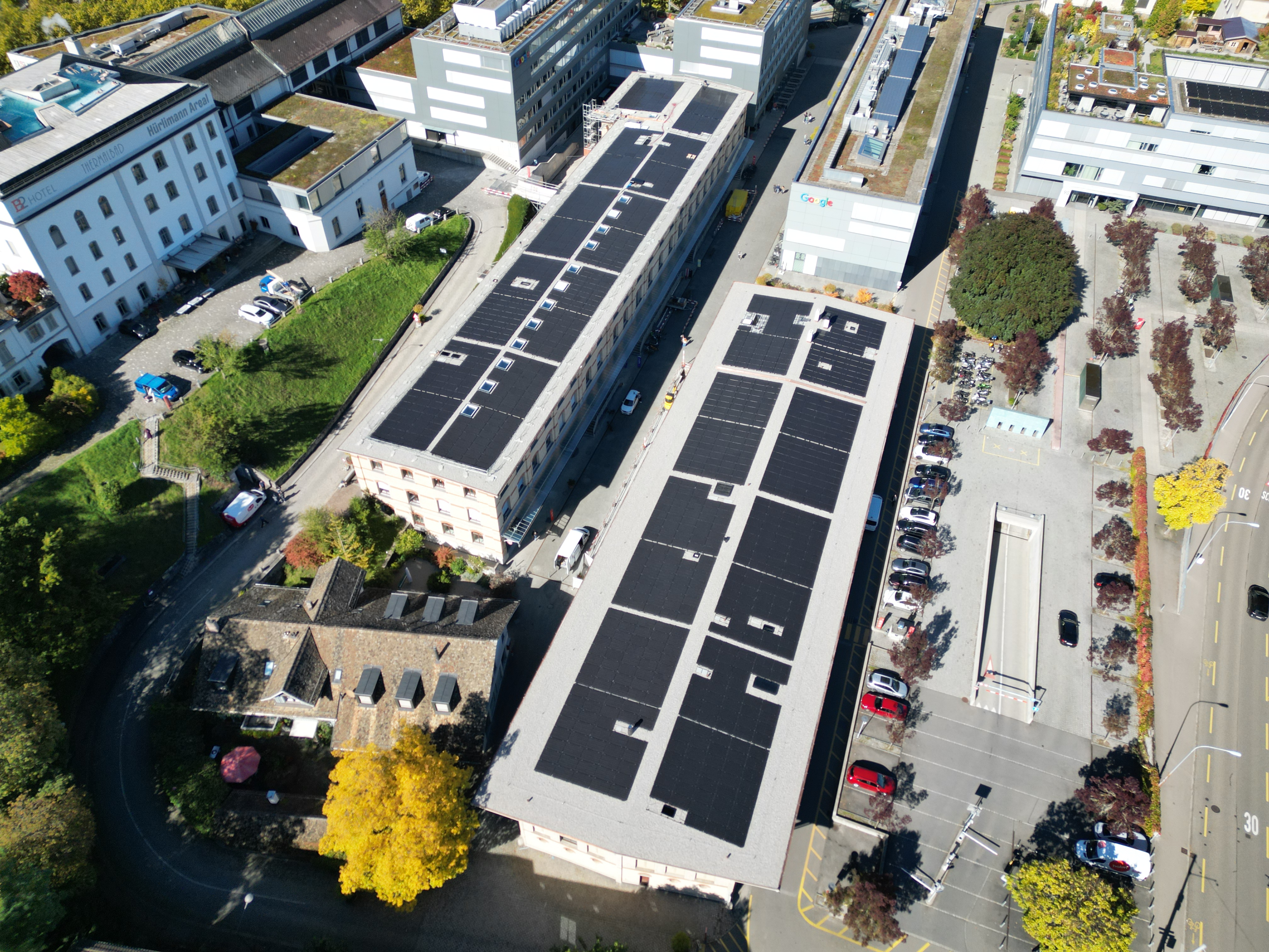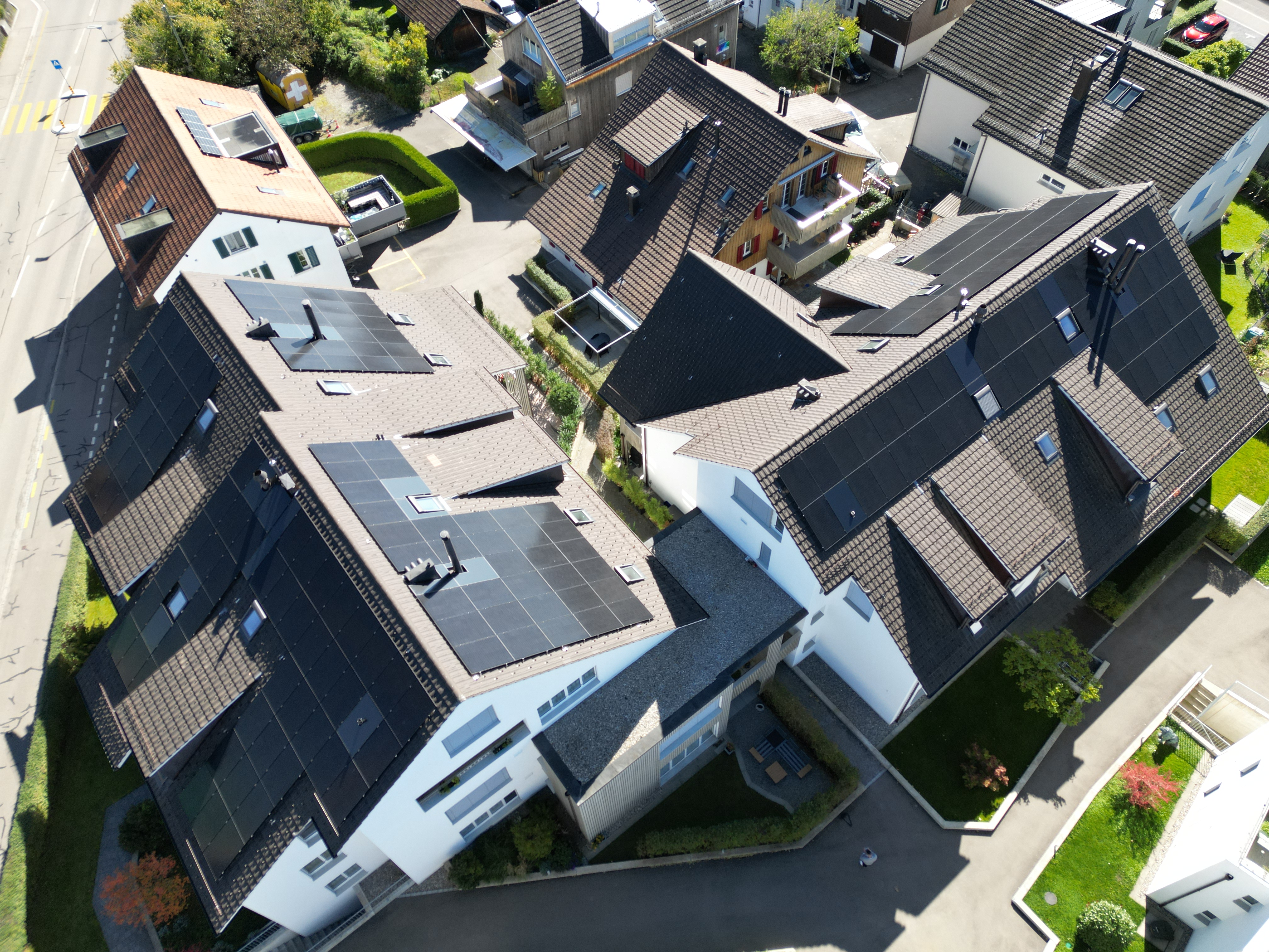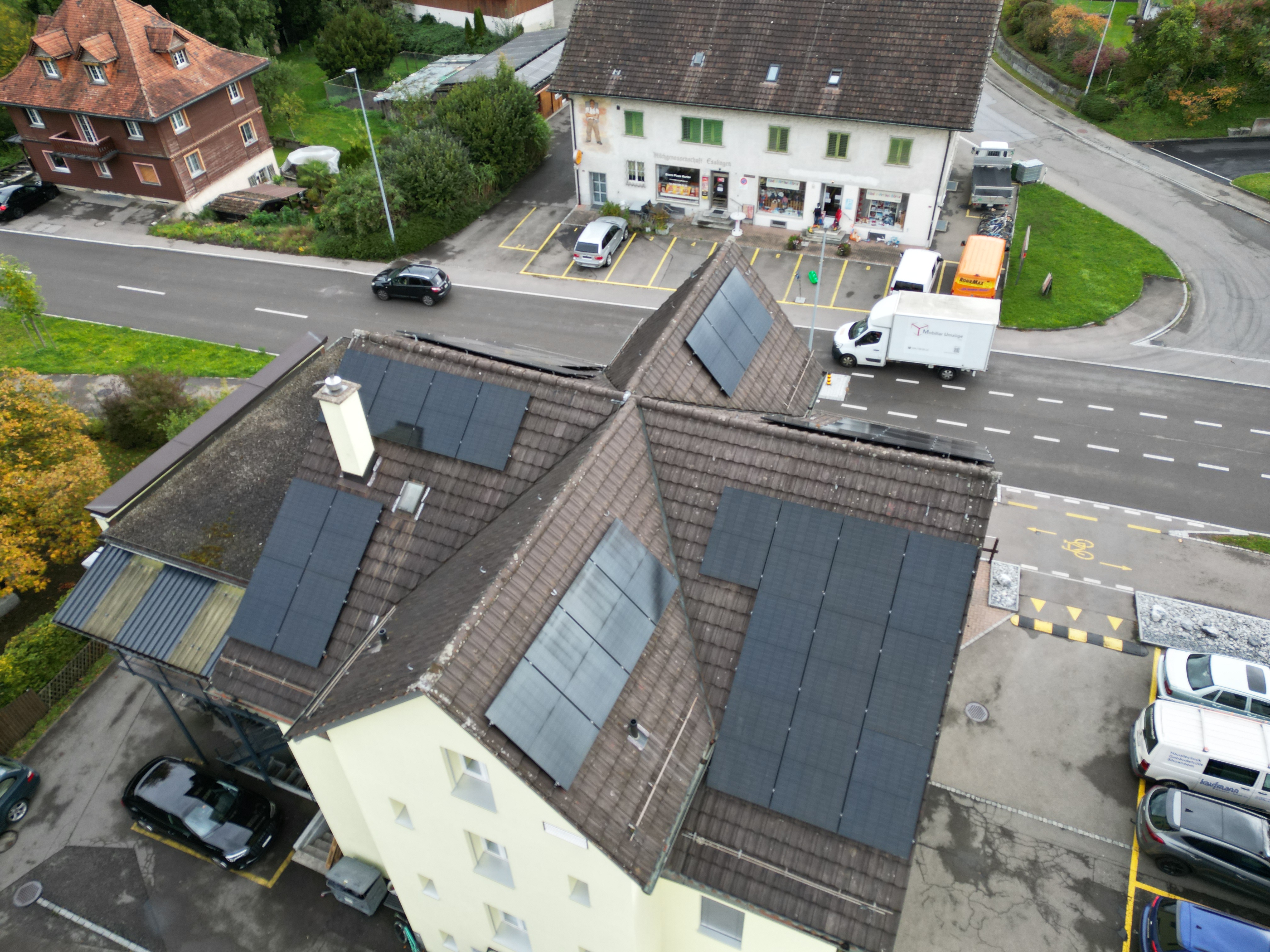 Fertigstellung einer Aufdach - Photovoltaik (PV) Solaranlage einer E - Auto Ladestationerschliessung und dem Energiemanagement, Zürichstrasse in Nänikon.